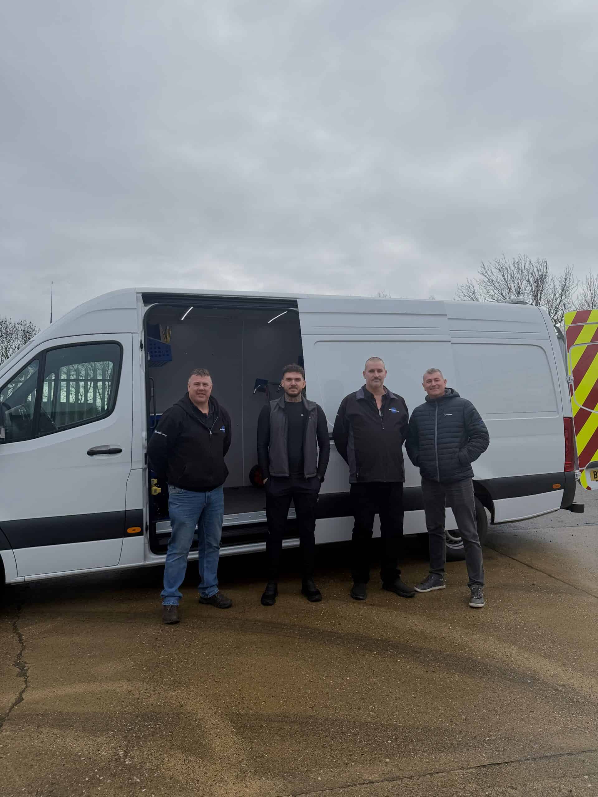 We have been working with GeeDee based in Hartlepool for many years now and have watched them grow as a company, increase the range of services and witnessed their skill levels increase beyond recognition. We had the absolute privilege to hand over a brand new addition to their fleet. A purpose built lining vehicle fully kitted out with a new Bluelight system.